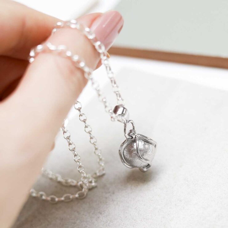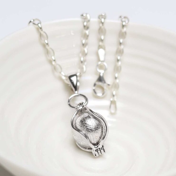 Consisted of a free spinning orb of meteorite caged in a stylish silver pendant this makes a beautiful piece of jewellery and an a talking point all in one!. If you’ve ever yearned to own something from out of this world, here’s your chance.