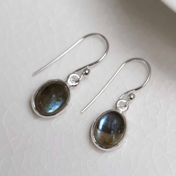 Our stunning Sterling Silver Dangly Labradorite Oval Earrings are available in either Sterling Silver or 24 carat Gold plated sterling silver. A perfect addition to any outfit.