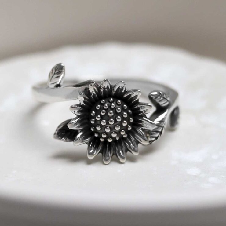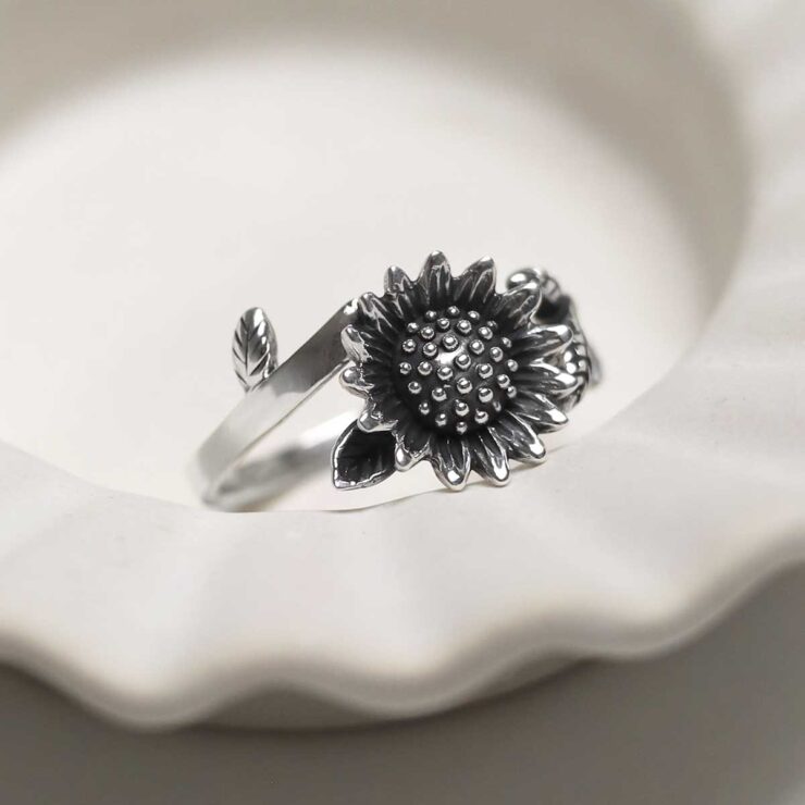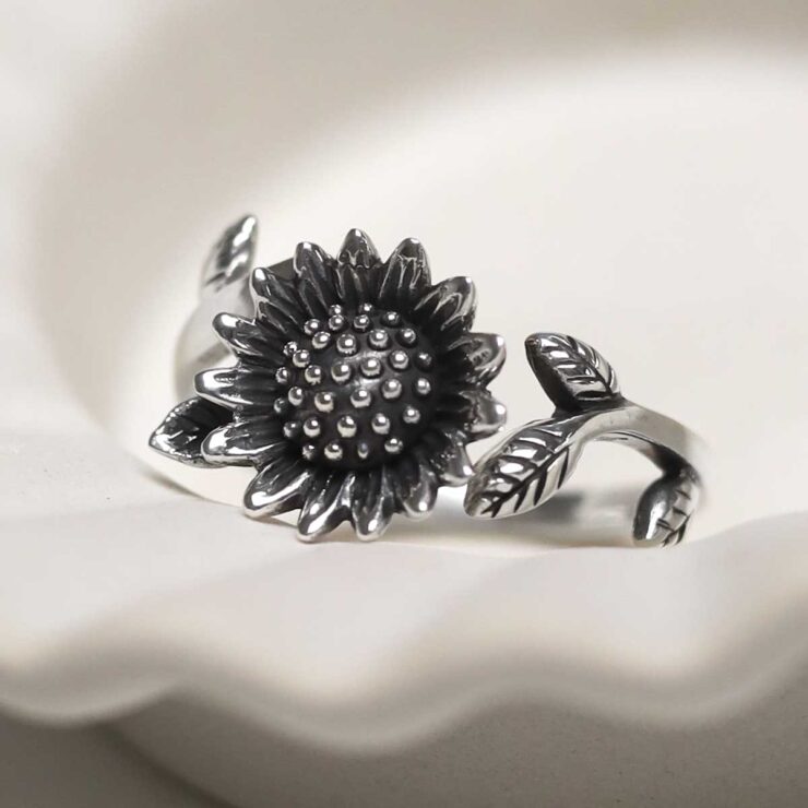Sterling Silver Adjustable Oxidised Sunflower Ring