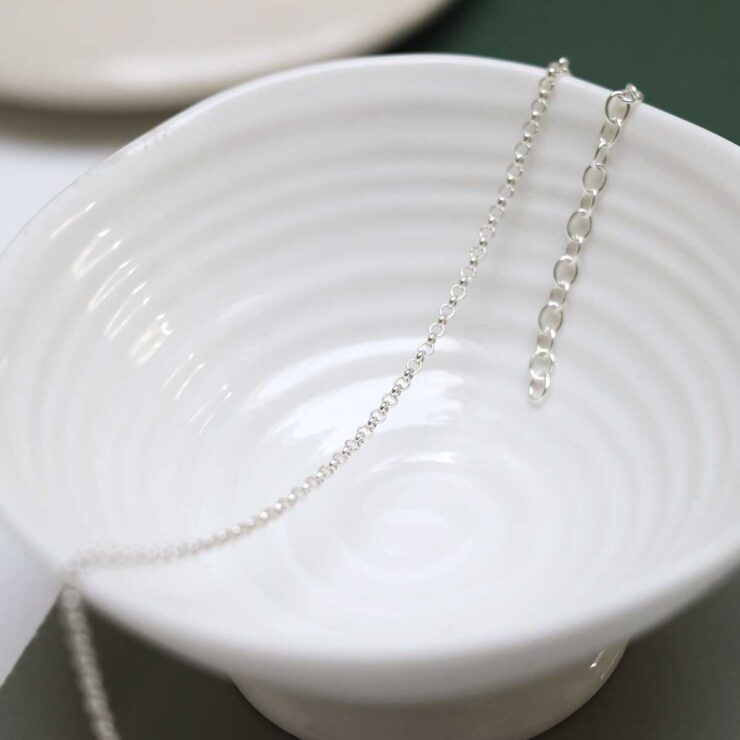 Martha Jackson’s silver belcher chains are sourced from Italy, where the best chains are made; high quality and made to last.