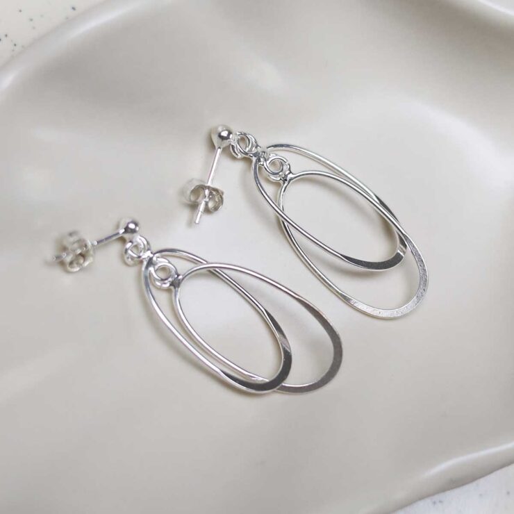 Add a contemporary flare to your look with our beautiful Sterling Silver Double Oval Stud Earrings