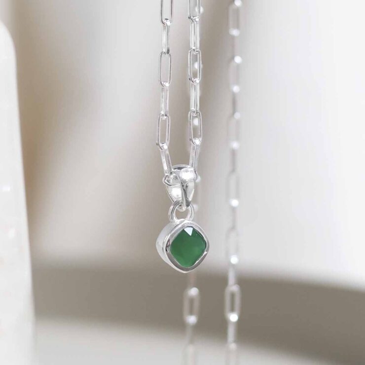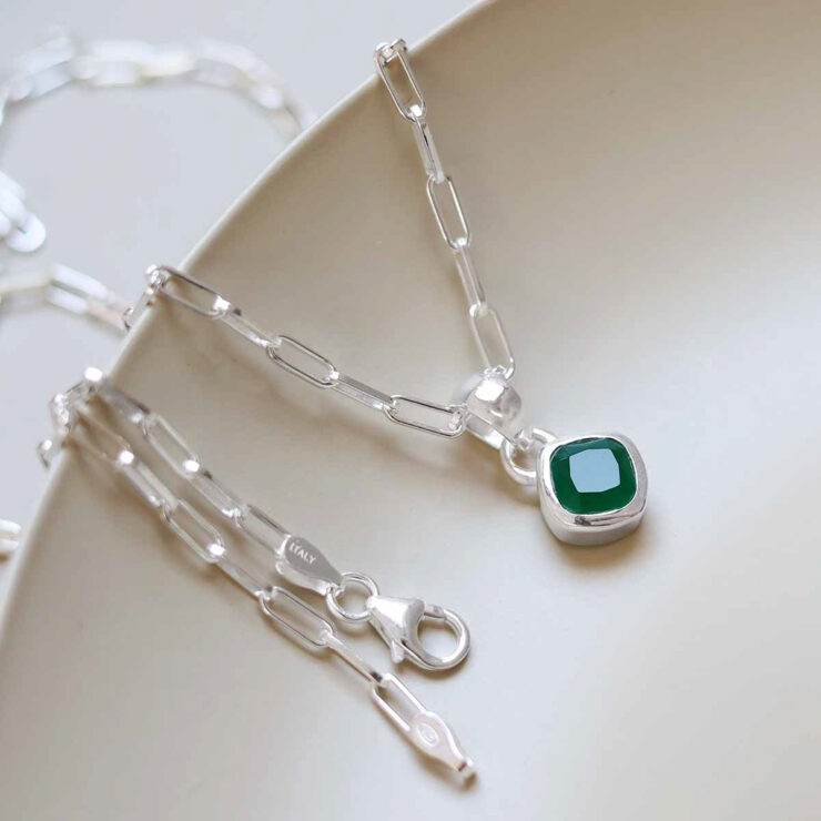 Inspired by growth and love, our Emerald Birthstone Necklace pairs a vivid green gemstone on a sterling silver fine paperclip chain. A beautiful expression of May’s spirit.