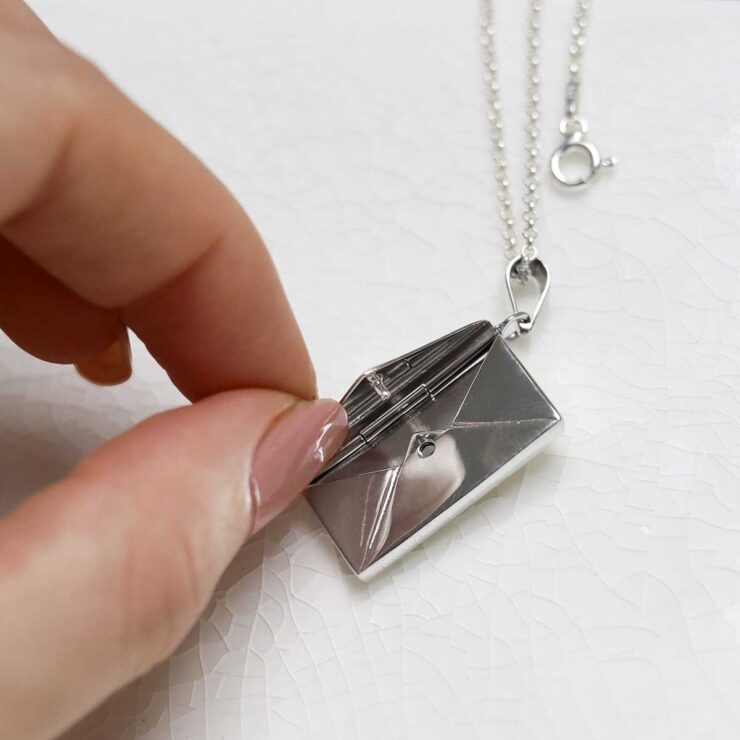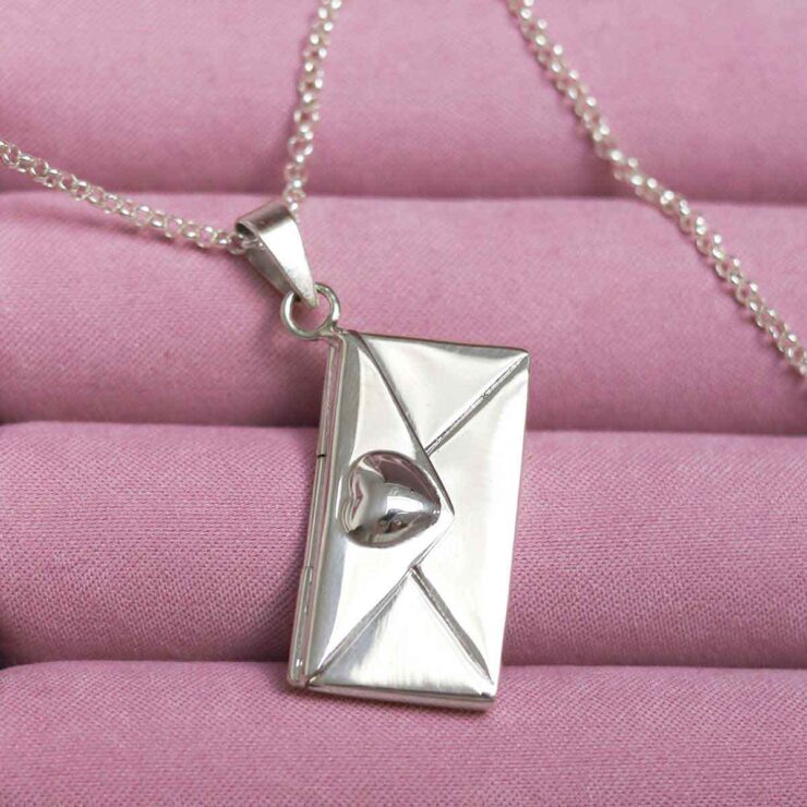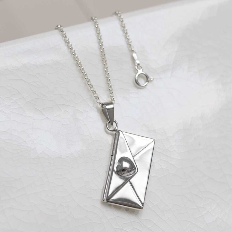 This delightful sterling silver locket takes its design inspiration from the simple love letter. Perfect as a gift for that special someone and with a hinged opening for slipping a secret love note in.