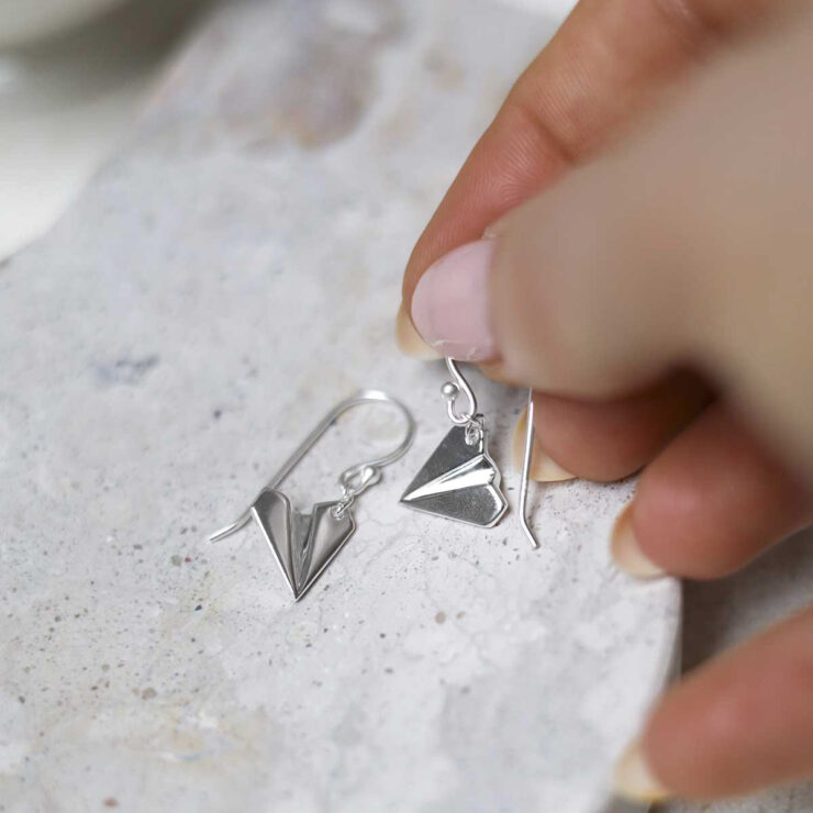 Sterling Silver Dangly Paper Airplane Earrings