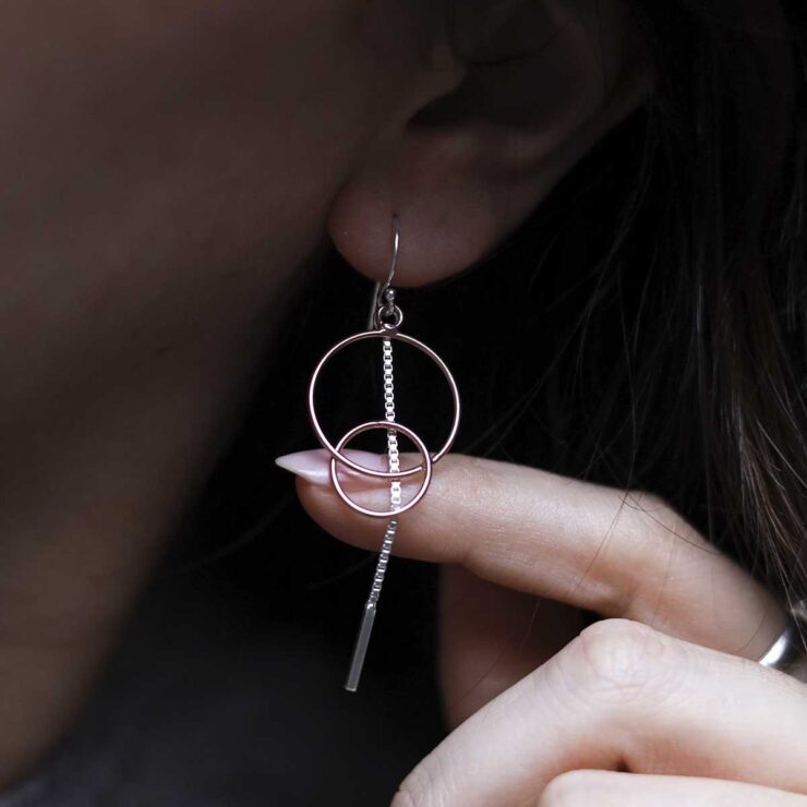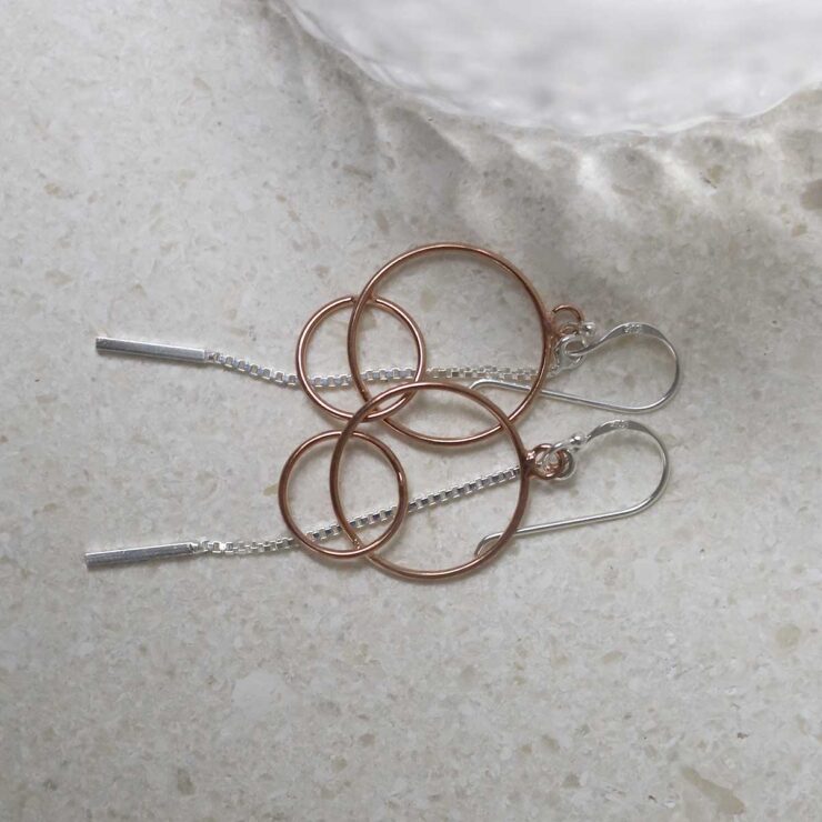 On trend contemporary design sets these wonderful Sterling silver and rose gold essential drop earrings apart from the rest.