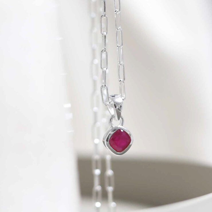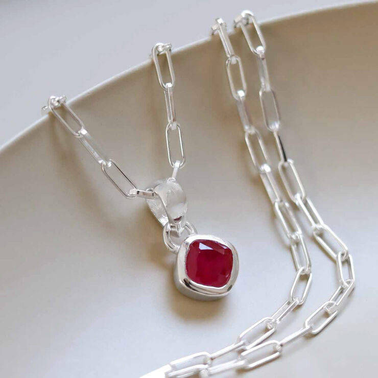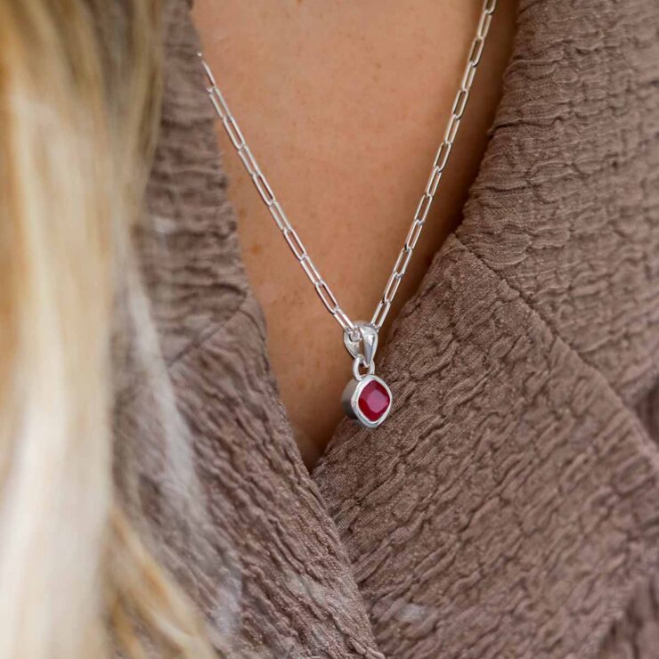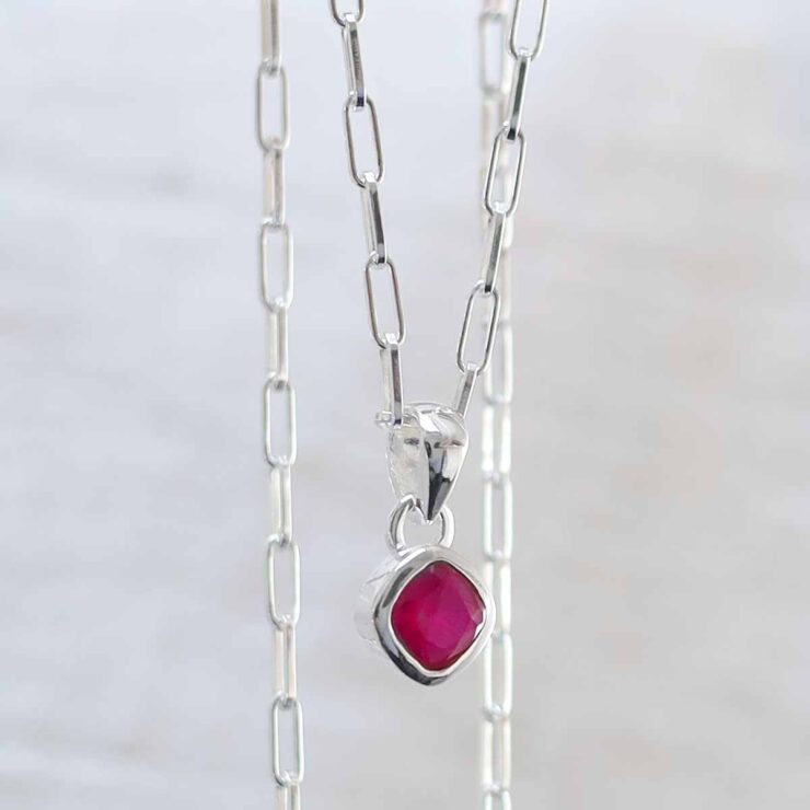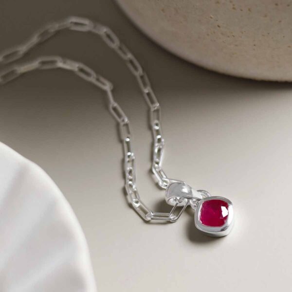Inspired by passion and elegance, our Ruby Birthstone Necklace features a striking red gem on a sterling silver fine paperclip chain. A confident piece for July born wearers.