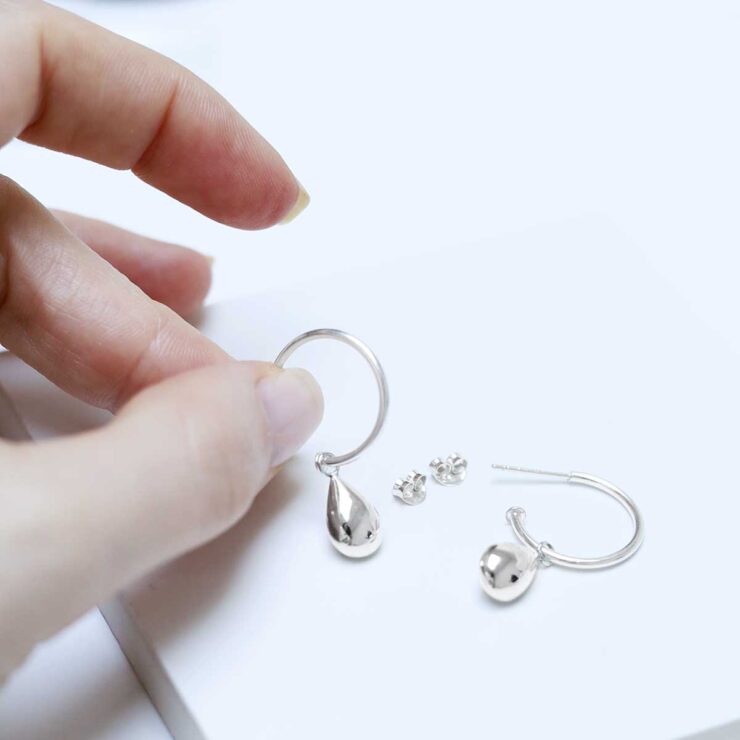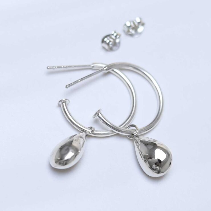 Our funky Sterling Silver Teardrop Stud Hoop Earrings are perfect for everyday wear
