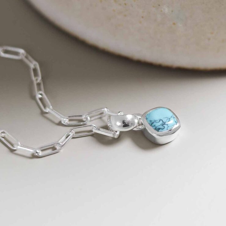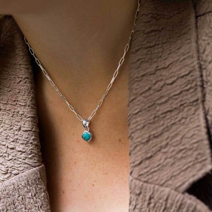 Inspired by wanderlust and winter skies, our Turquoise Birthstone Necklace showcases a vibrant stone on a sterling silver fine paperclip chain. A meaningful gift for December birthdays.